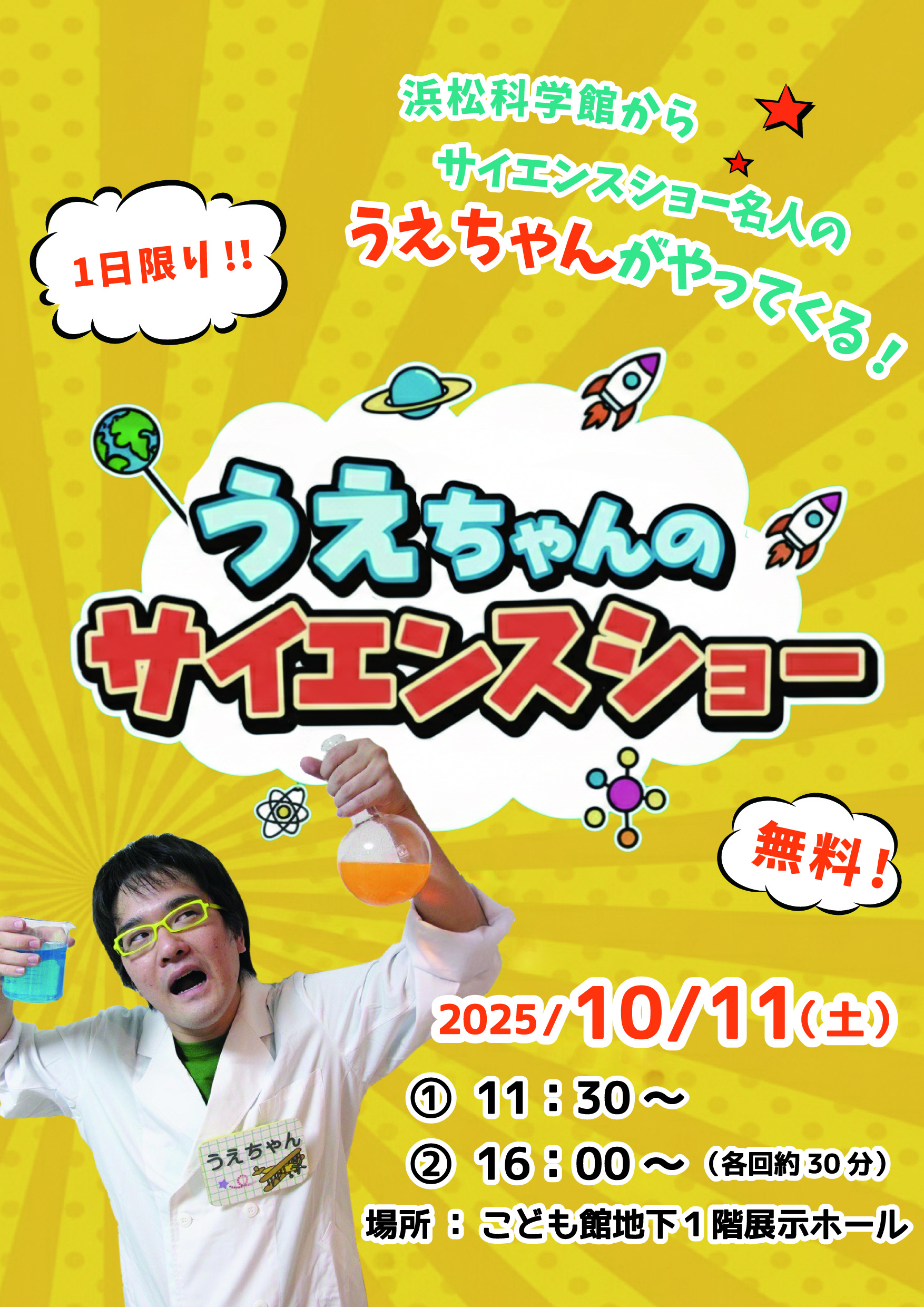 浜松科学館から実験名人のうえちゃんがやってくる!
