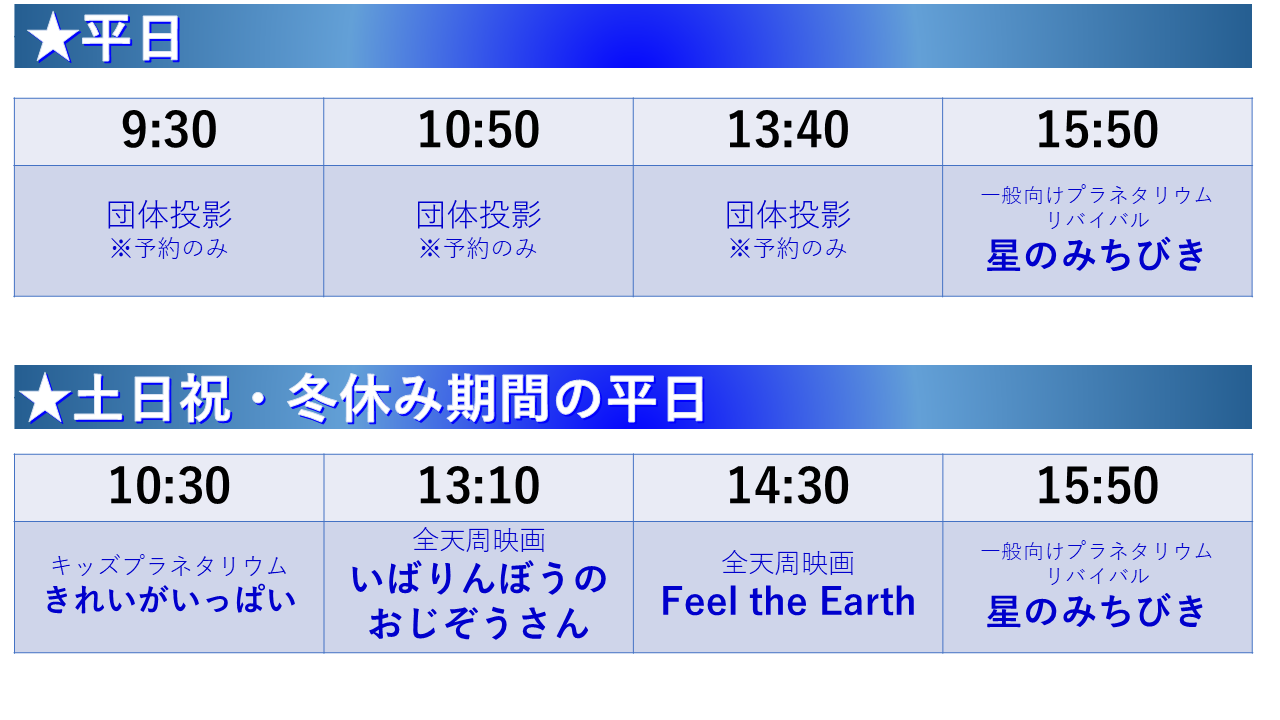 ※小さいお子様をお連れの方には、 キッズプラネタリウムをお勧めしています。